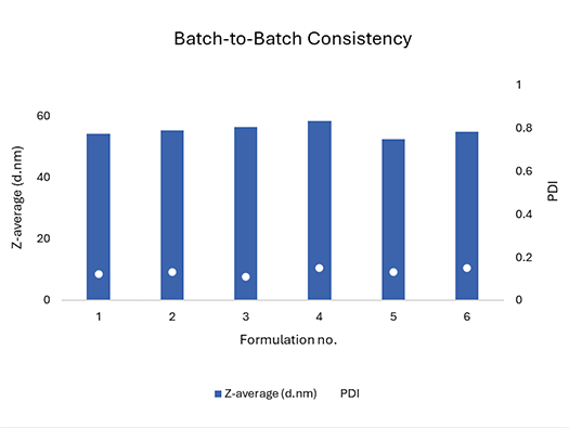 nanomake L™ utilizes both, single-use and multi-use microfluidic chips to enable reproducible scale-up of nano formulations, such as mRNA-lipid nanoparticles (LNPs), polymeric nanoparticles, liposomes and emulsions while preserving their critical quality attributes. The instrument is based on controlled microfluidic mixing technology, ensures the production of uniform and reproducible high-quality nanoparticles.